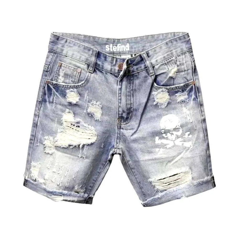 Skull print ripped denim shorts