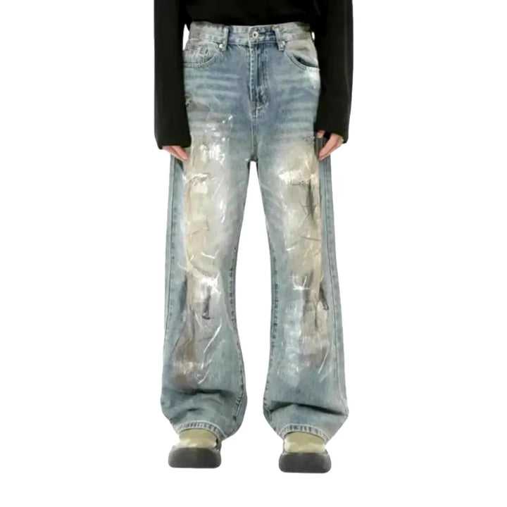 • Unique Artistic Pattern: Adorned with a striking urban print, light faded lines, and playful paint accents, these jeans serve as a canvas of style, elevating your casual look to new artistic heights.